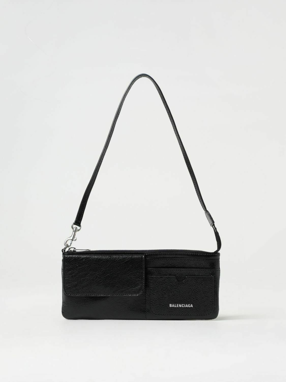 Explorer Shoulder Bag in Supple Lambskin with Multiple Pockets and Adjustable Strap - Black / One Size