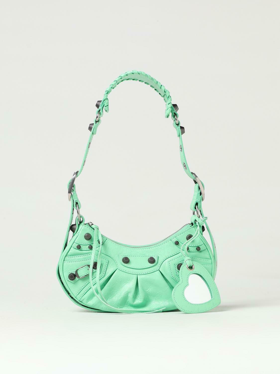 Stylish Leather Handbag with Braided Shoulder Strap and Heart-Shaped Detail - Green / U EU