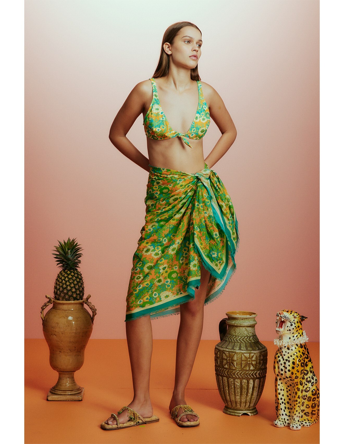 Emerald Cove frayed organic cotton-voile pareo