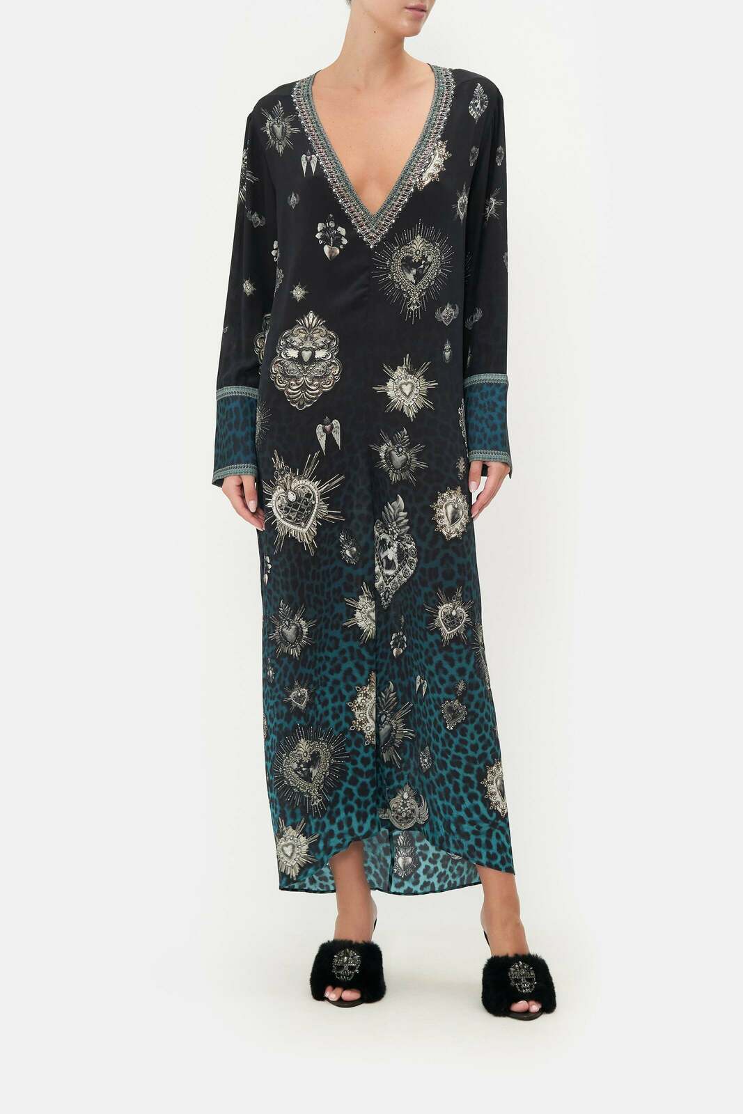 DRAPED BACK LONG SLEEVE DRESS ANIMAL ANARCHY