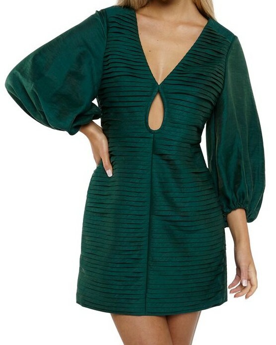 Green Keyhole Balloon Sleeve Mini Dress