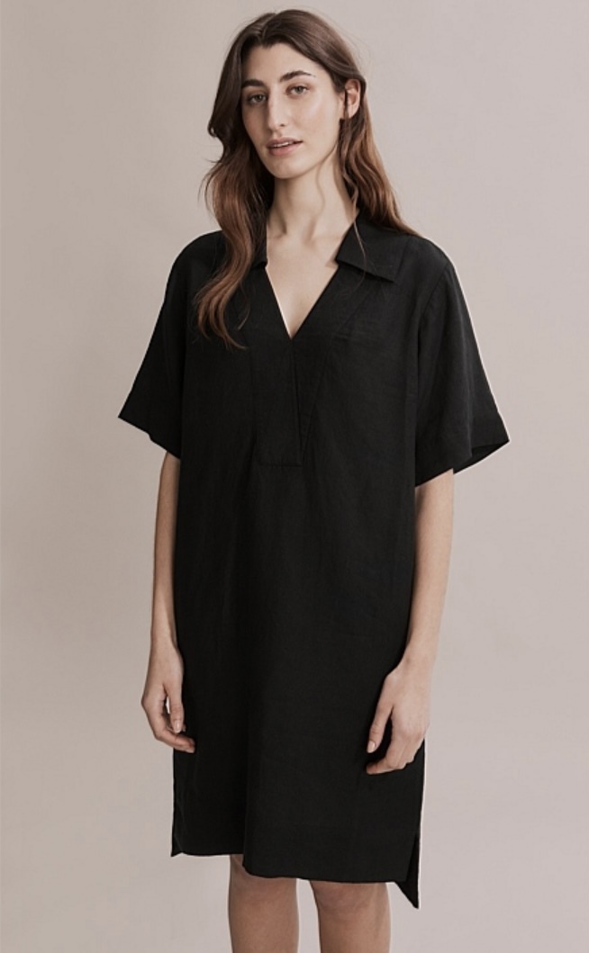 BLACK LINEN POPOVER DRESS