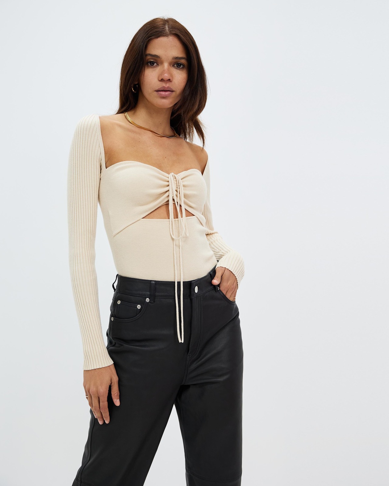 Long Sleeve Tie Neck Knit Top
