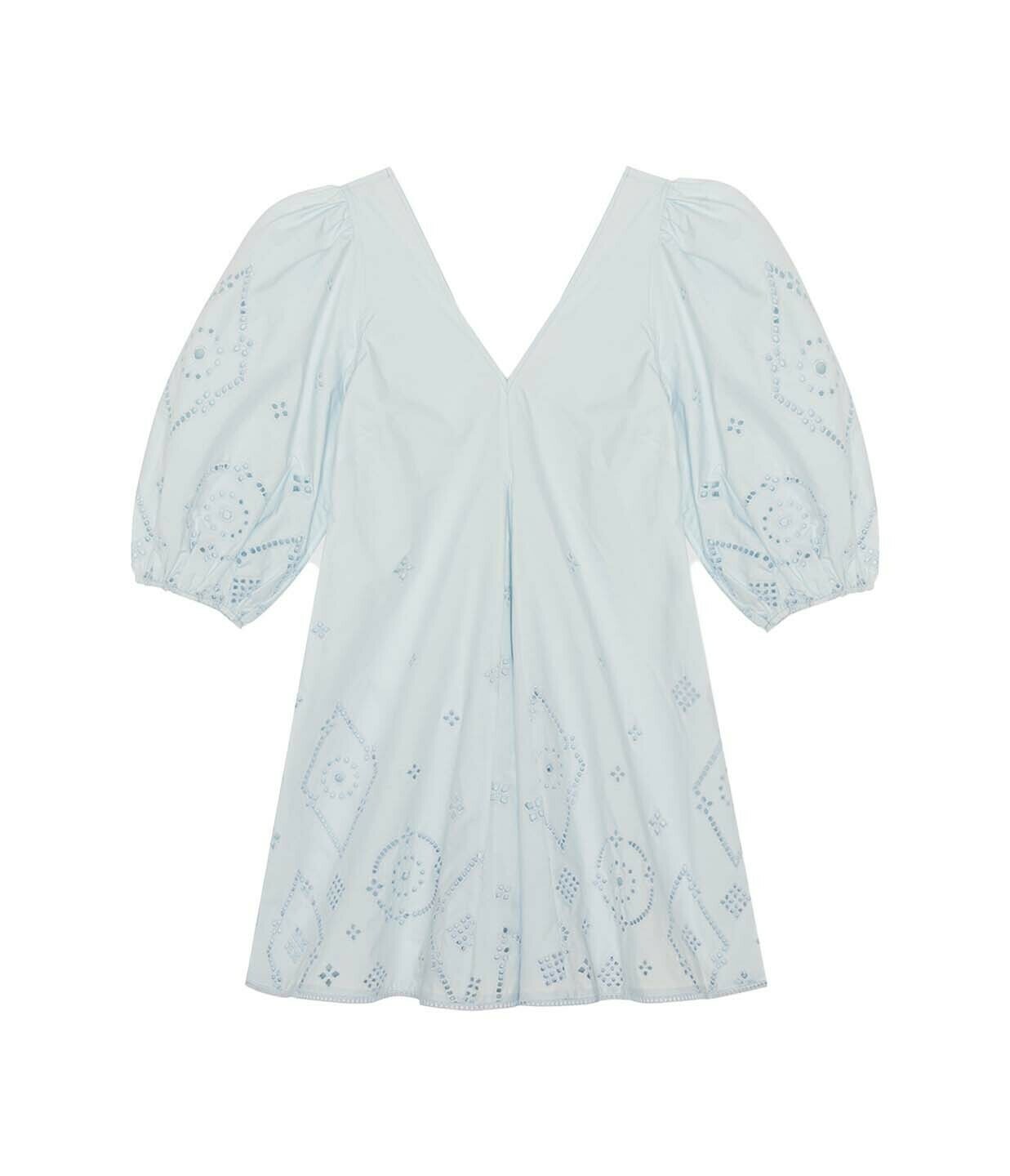 Broderie Anglaise Puff Sleeve Mini Dress in Illusion Blue