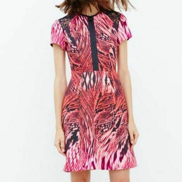 Menagerie Pink Short Sleeve Zip Front Fit & Flare Skater Dress