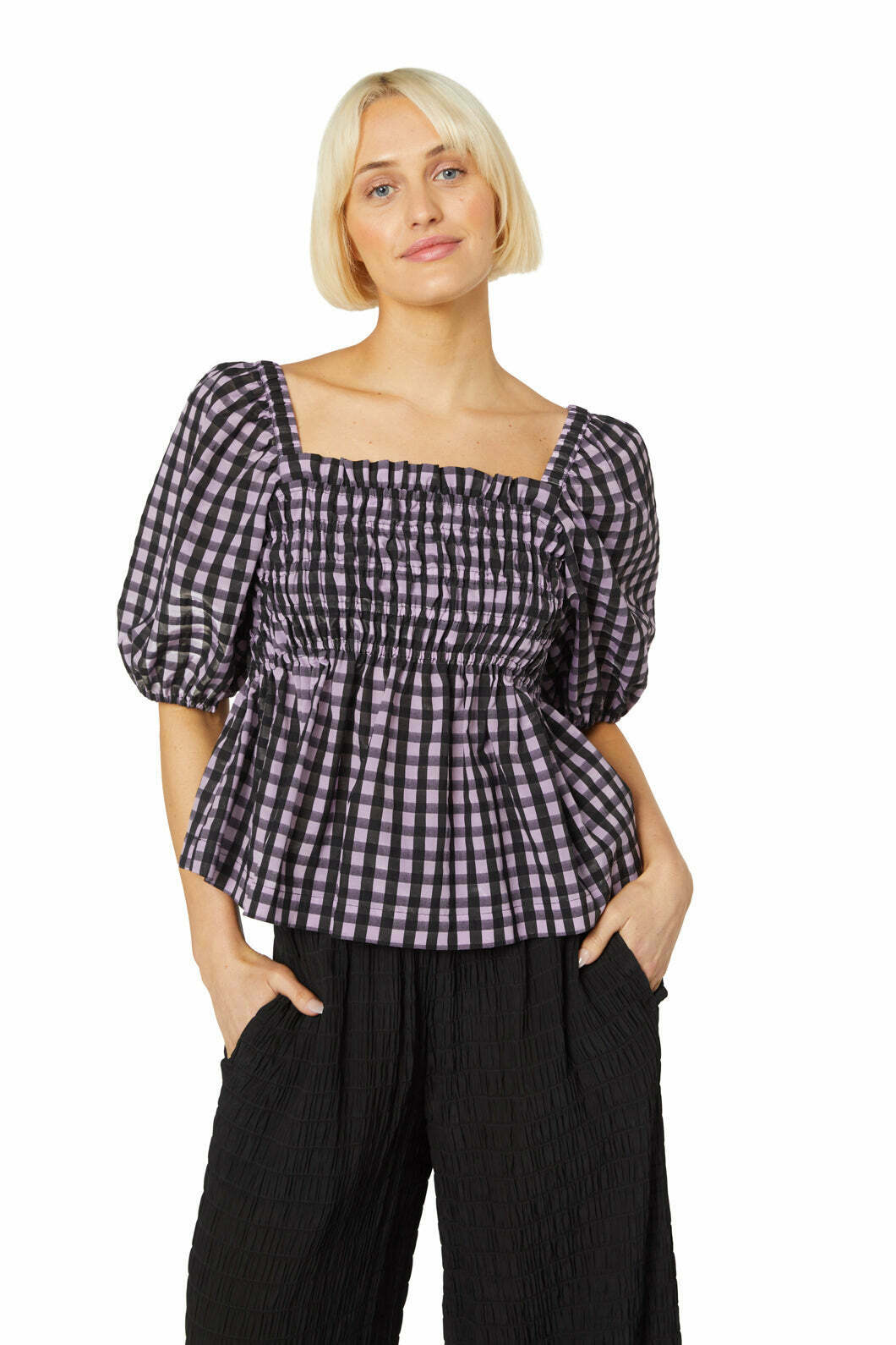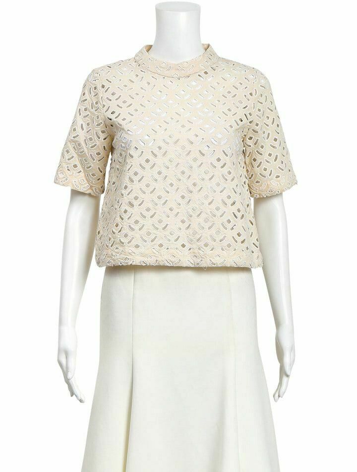 Cream Embroidered Broderie Cotton High Neck Blouse Top