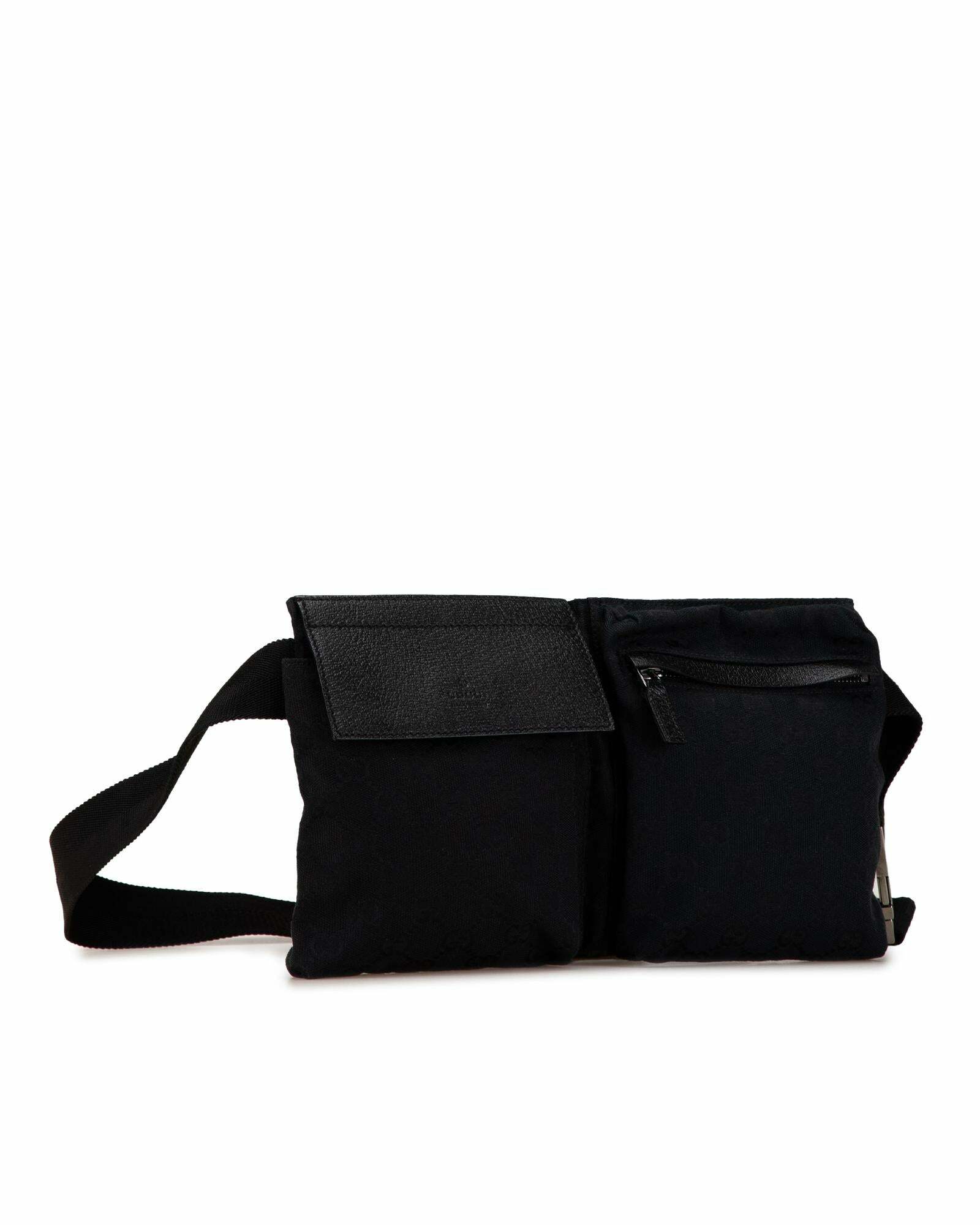 Canvas Double Pocket Belt Bag with Leather Trim - Black / One Size