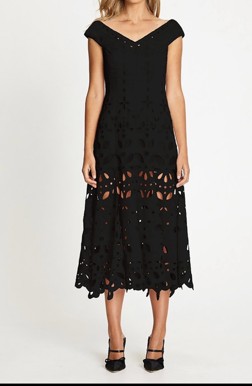 BNWT BLACK BAUDELAIRE MIDI DRESS RRP $550)
