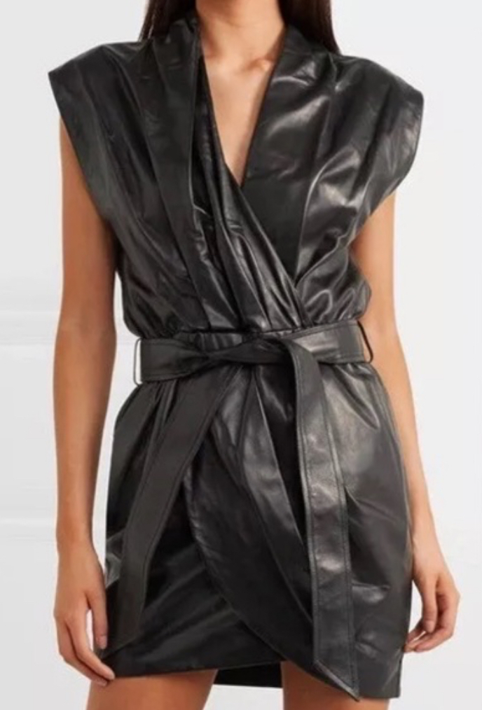 BNWT Black 100% leather IRO wrap effect dress FR 40 AU 8-10 RRP$1495