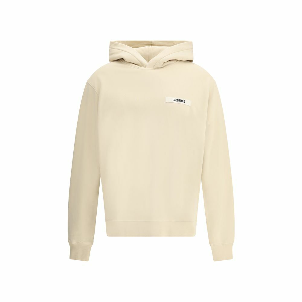 Logo Patch Cotton Hoodie with Fleece Interior - Beige / XL