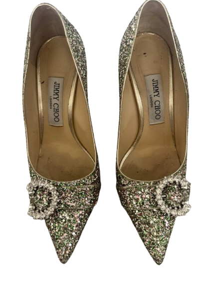 Metalic Glitter Fabric Dahlia Peep Toe Platfrom Pumps