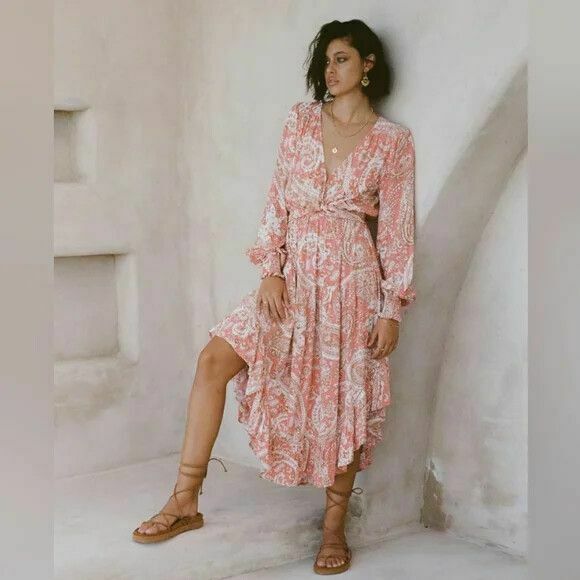 Mila Strappy Pink Peach Floral Midi Dress NWT