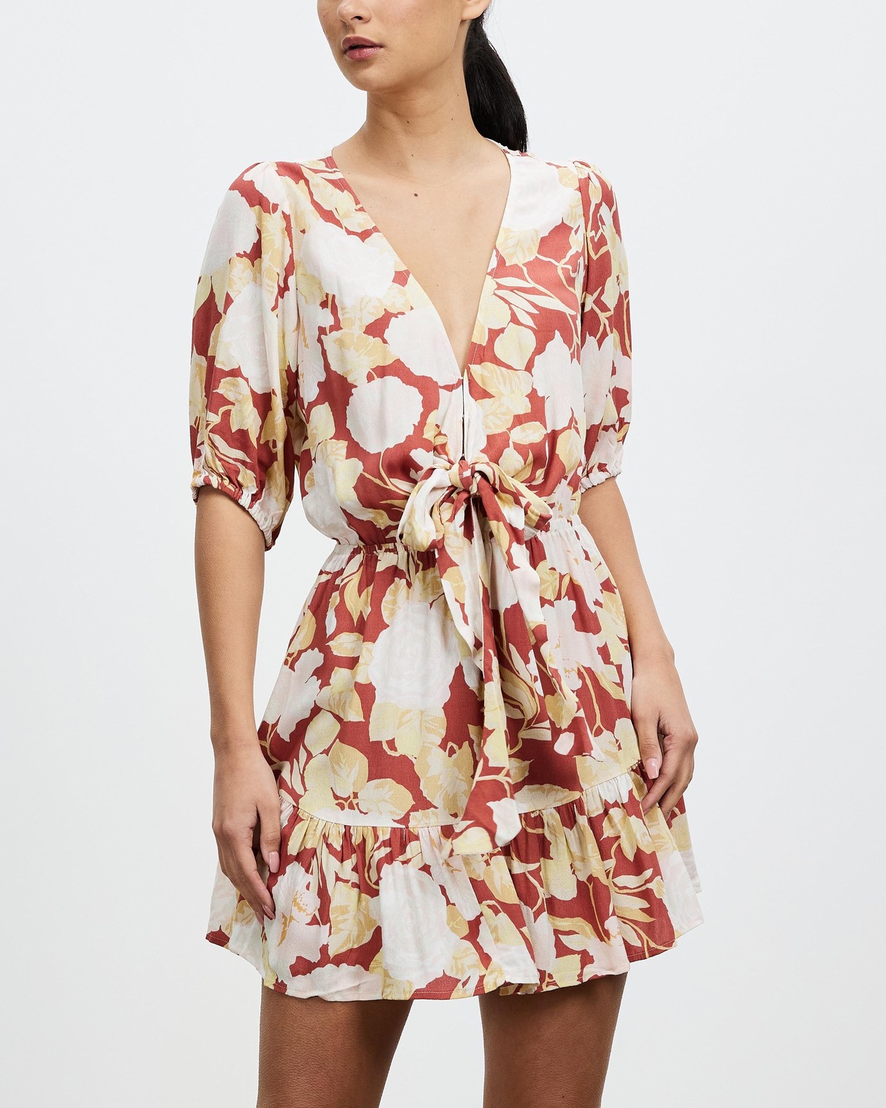 Nomade Leopard Print Tan Tie Front Midi Dress