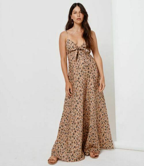 Nomade Leopard Print Tan Tie Front Maxi Dress NWT