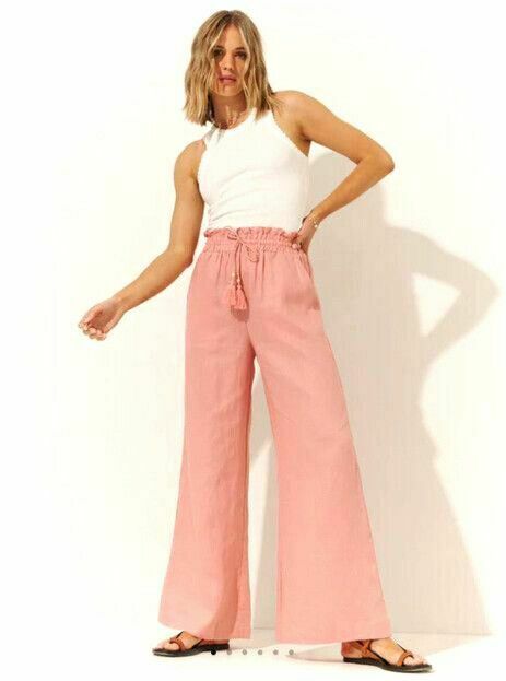 Molly Linen Italian Clay Pink High Waisted Wide Leg Pants RRP$199