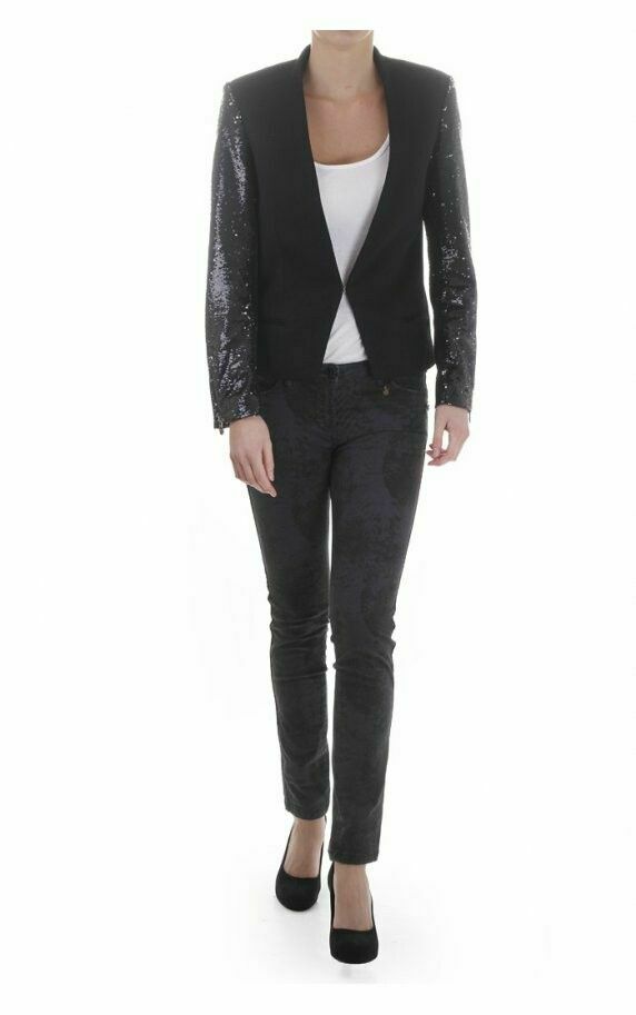 Wool Black Sequin Sleeve Tuxedo Blazer Jacket