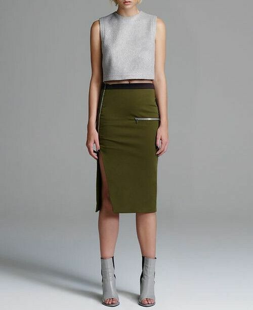 Khaki Green Zip Side Split High Waisted Pencil Skirt RRRP$399