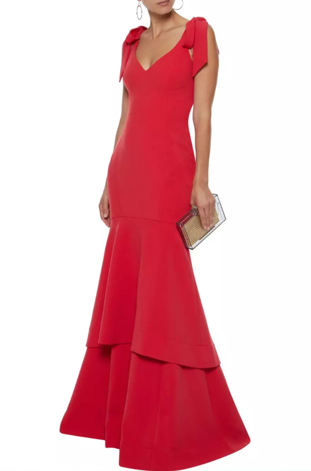 Rebecca Vallance Domingo Tiered Bow-detailed Crepe Gown red dress event