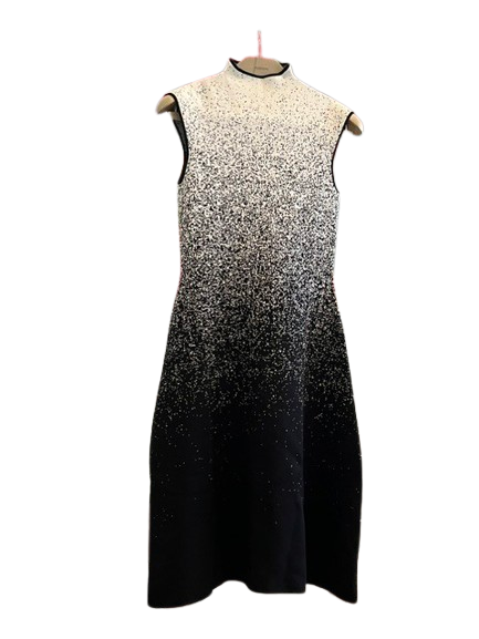 Milano Knit Fuhnnel Neck White and Black Ombre Knee-Length Dress