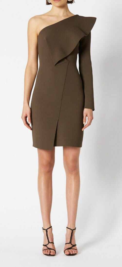 one shoulder ruffle crepe knit dress