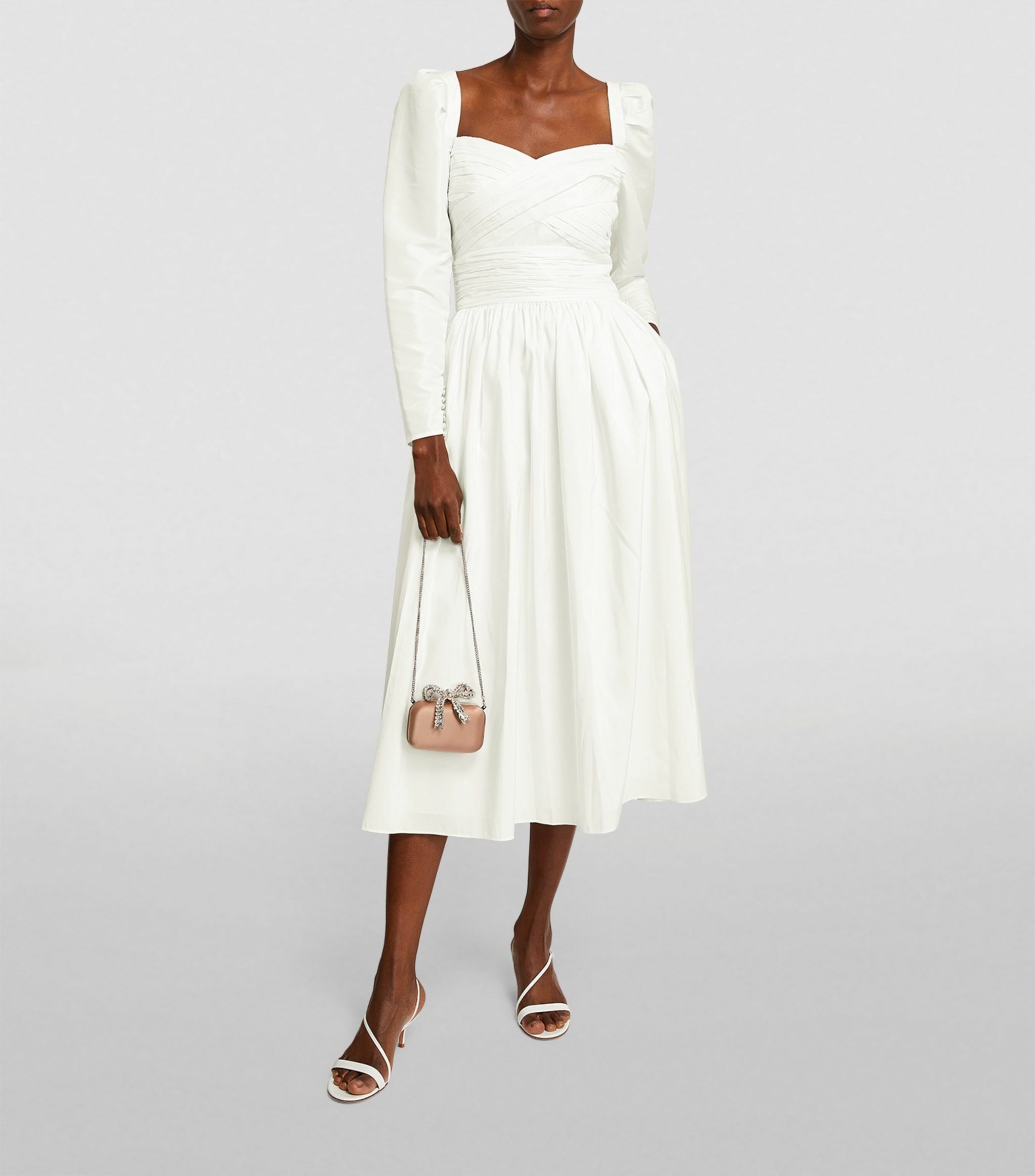 Off-the-shoulder Gathered Taffeta Midi Dress