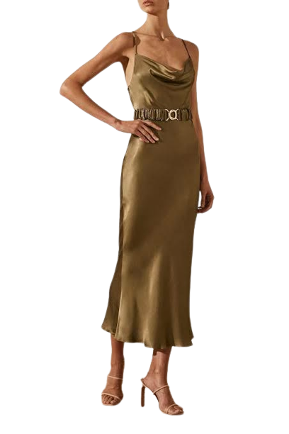 GALA BIAS MIDI DRESS WITH BELT WARM OLIVE GREEN
