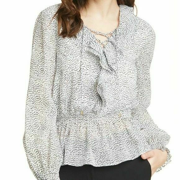 Alyanna Lace Up Ruffle Front Textured Long Sleeve Blouse Top
