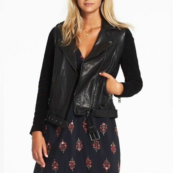 Vedette Leather Suede Black Biker Jacket RRP$600