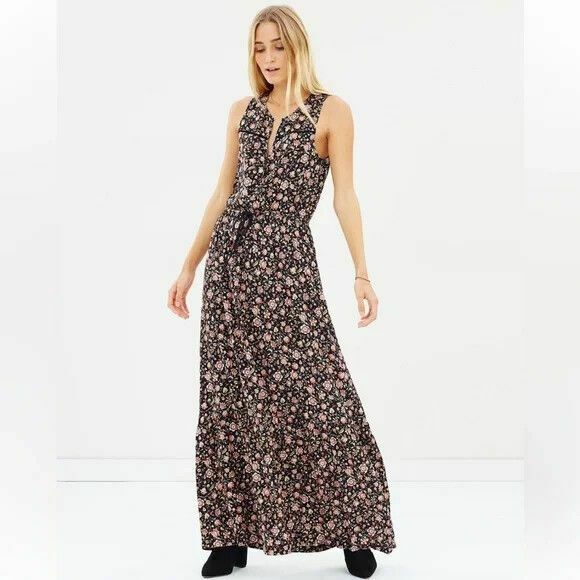 Marquisa Winter Floral Washed Black Floral Sleeveless Maxi Dress