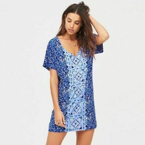 Totem Blue Mumu Kaftan Beach Mini Dress