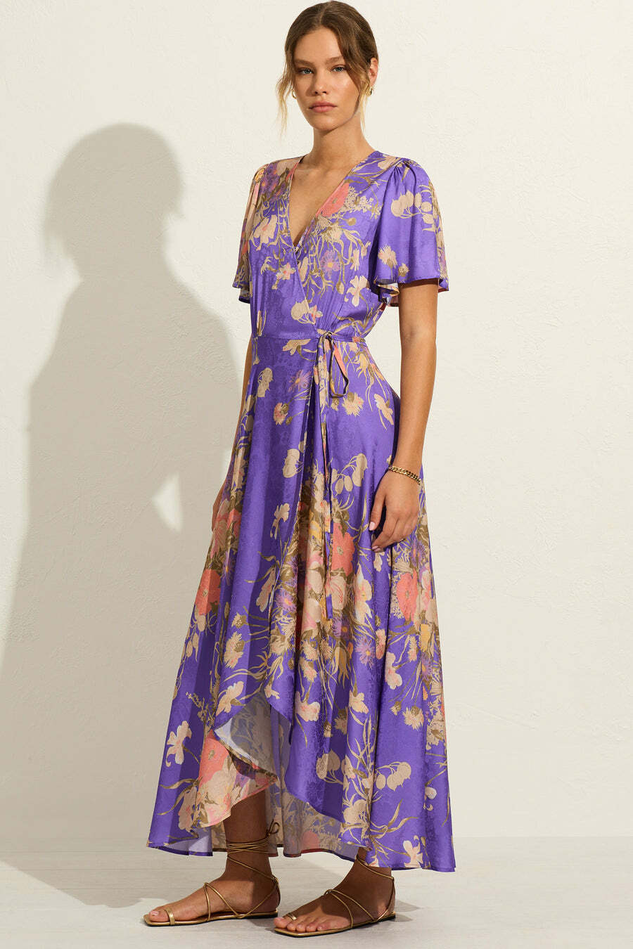 Rose Cream Bell Cuffed Mini Wrap Dress