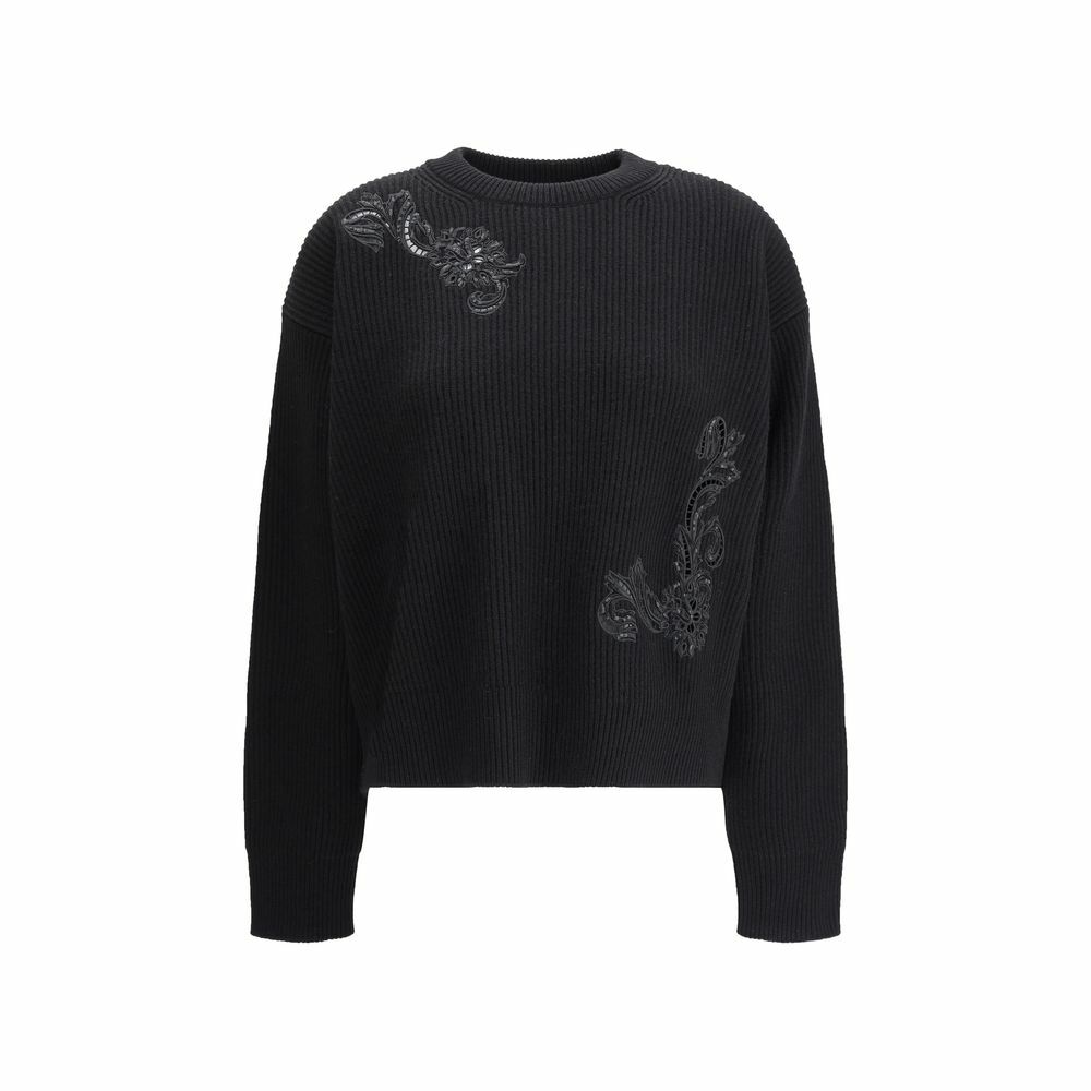 Barocco Leaf Embroidered Wool Sweater - Black / IT40 | M