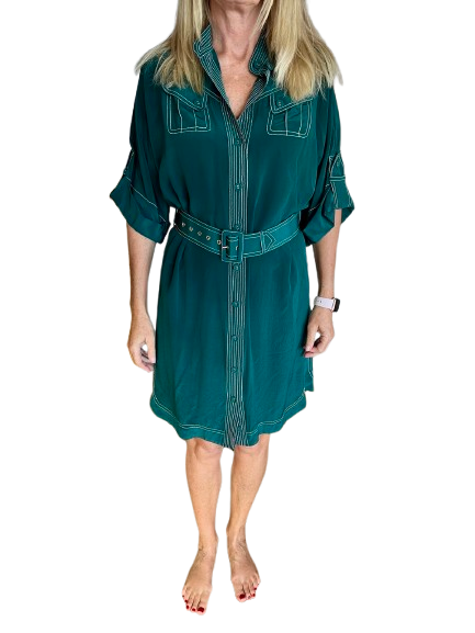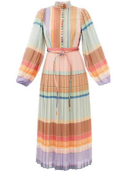 Rainbow Striped Crepe De Chine Midi Dress Small /AU 8)
