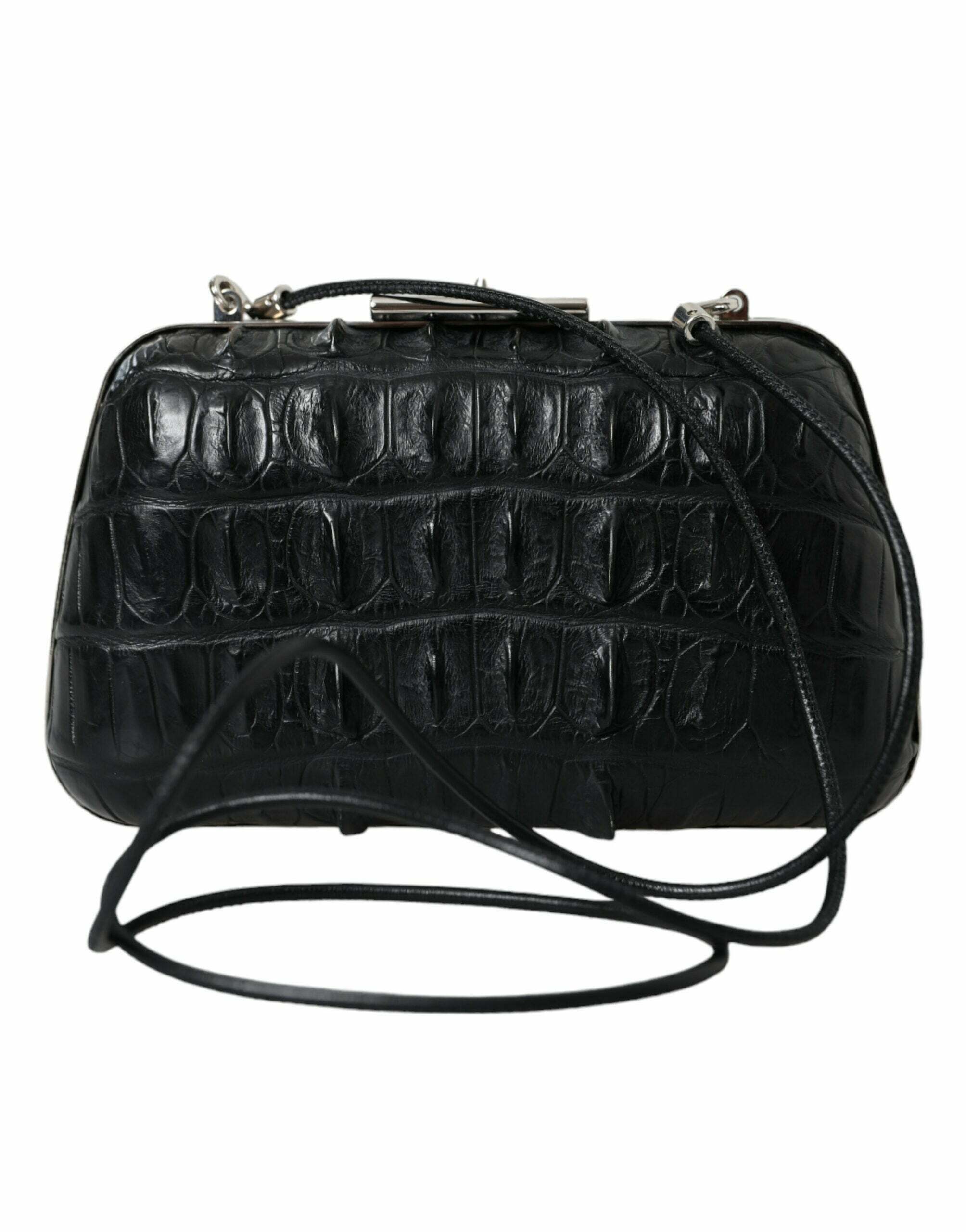 Sleek Crocodile Leather Evening Clutch with Silver Detailing - Black / One Size