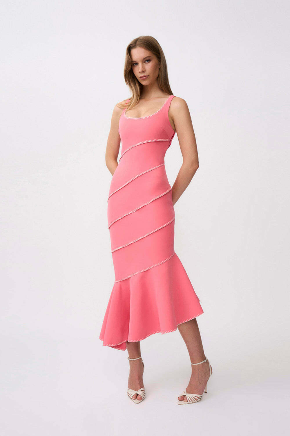 Nautilus Swirl Knit Midi Dress - Pink Ivory