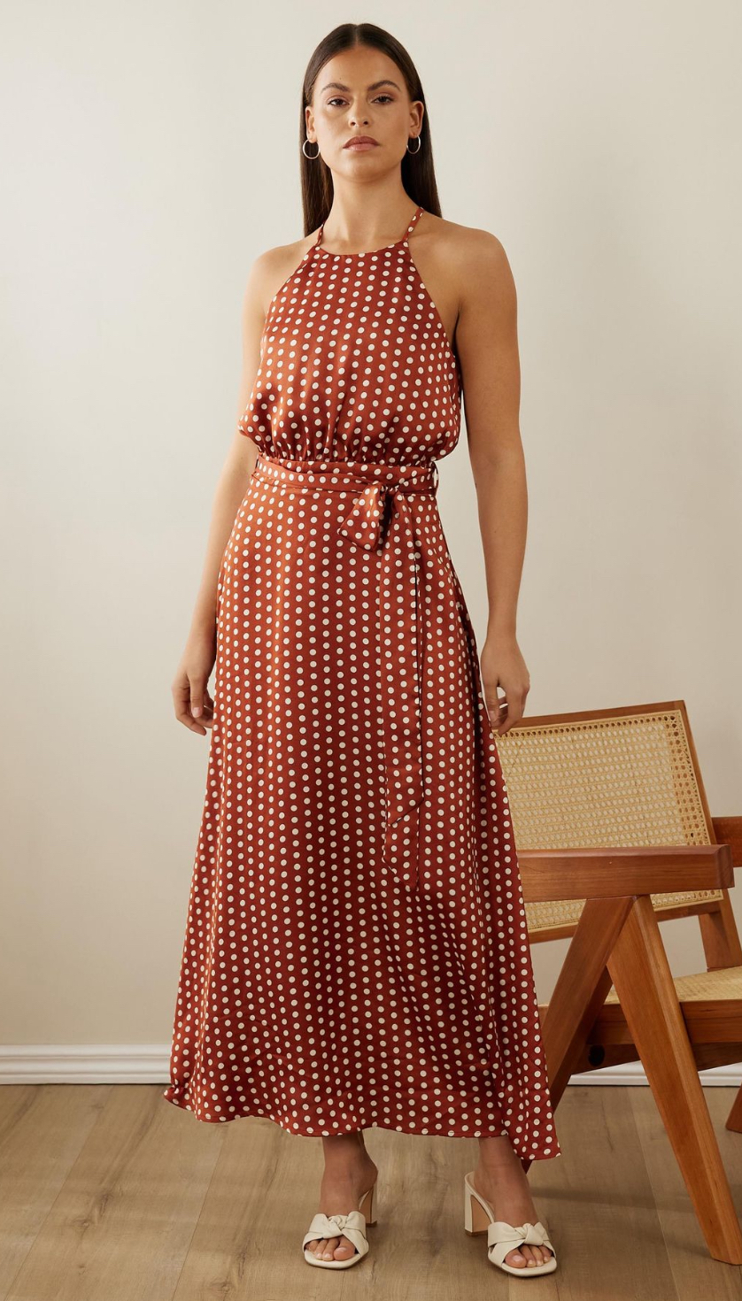 Rust / Polkadot Midi Dress