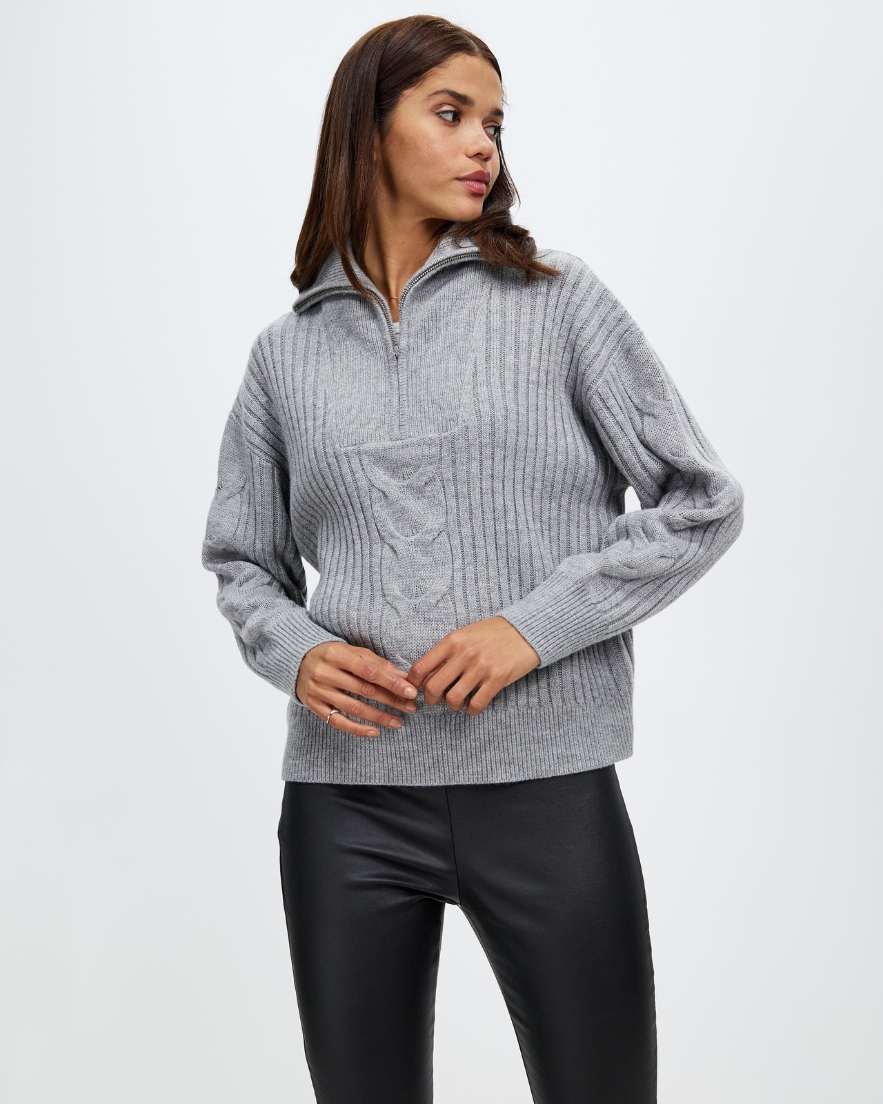 Henley Quarter Zip Cable Knit