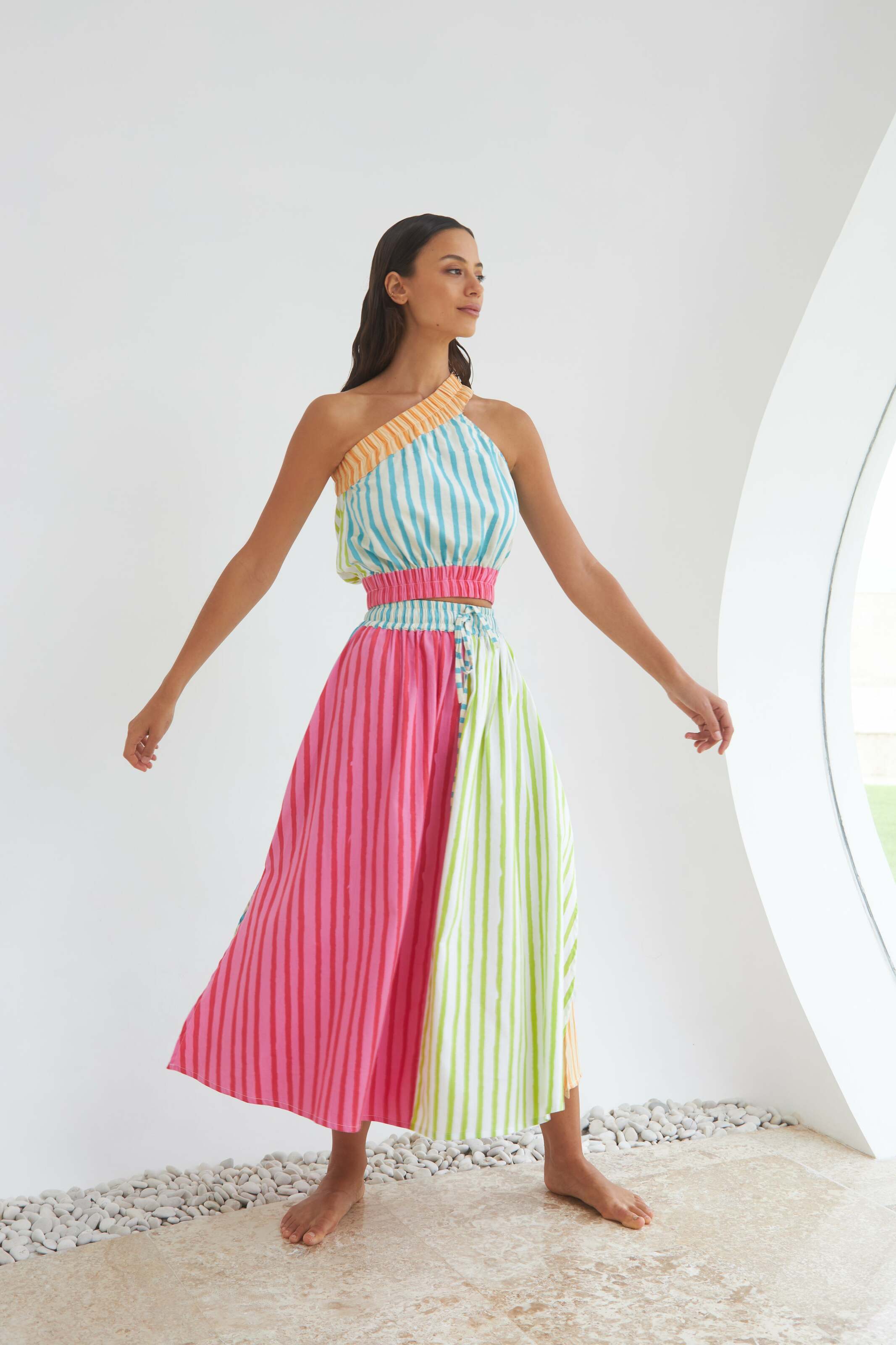 THE SUNNY SIDE UP ELASTIC CROP TOP - MULTI COLOUR STRIPES