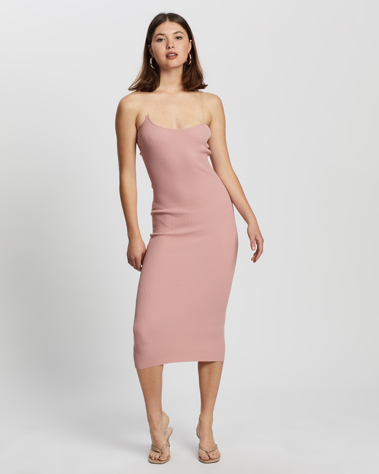 Strappy V-Neck Rib Cut Out Midaxi Dress