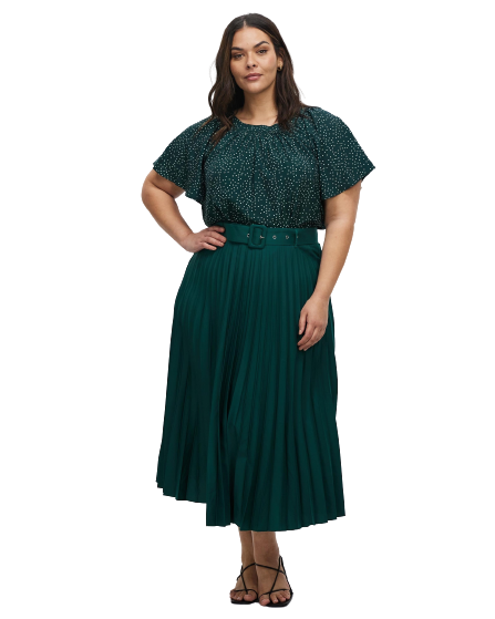 Hailey Pleated Belt Midi Skirt