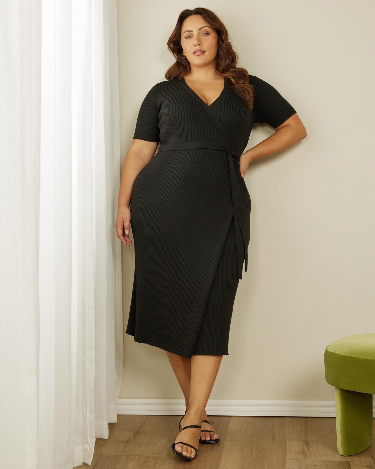 NWT Satin Feel Black & White Spotted Wraparound Midi-Dress-$100