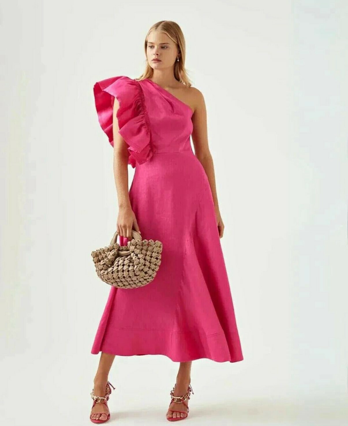 / Bonjour Aysmmetric Midi Dress / Fuchsia