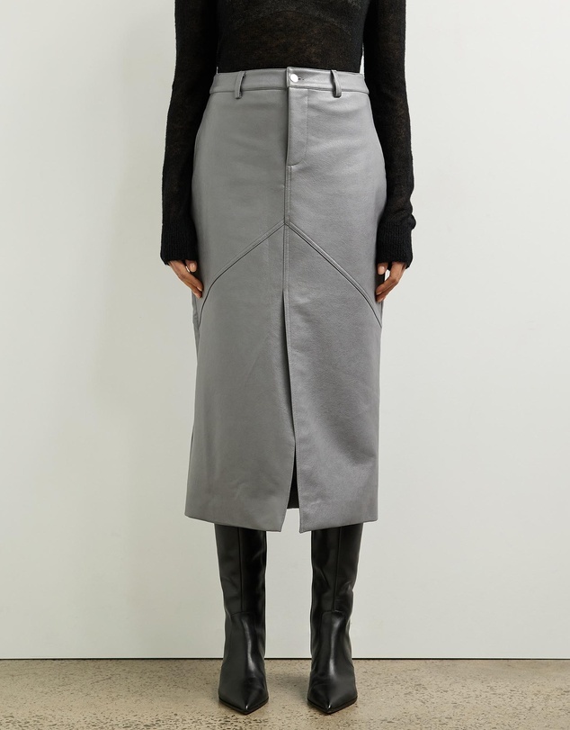 Aude Leather Look Midi Skirt