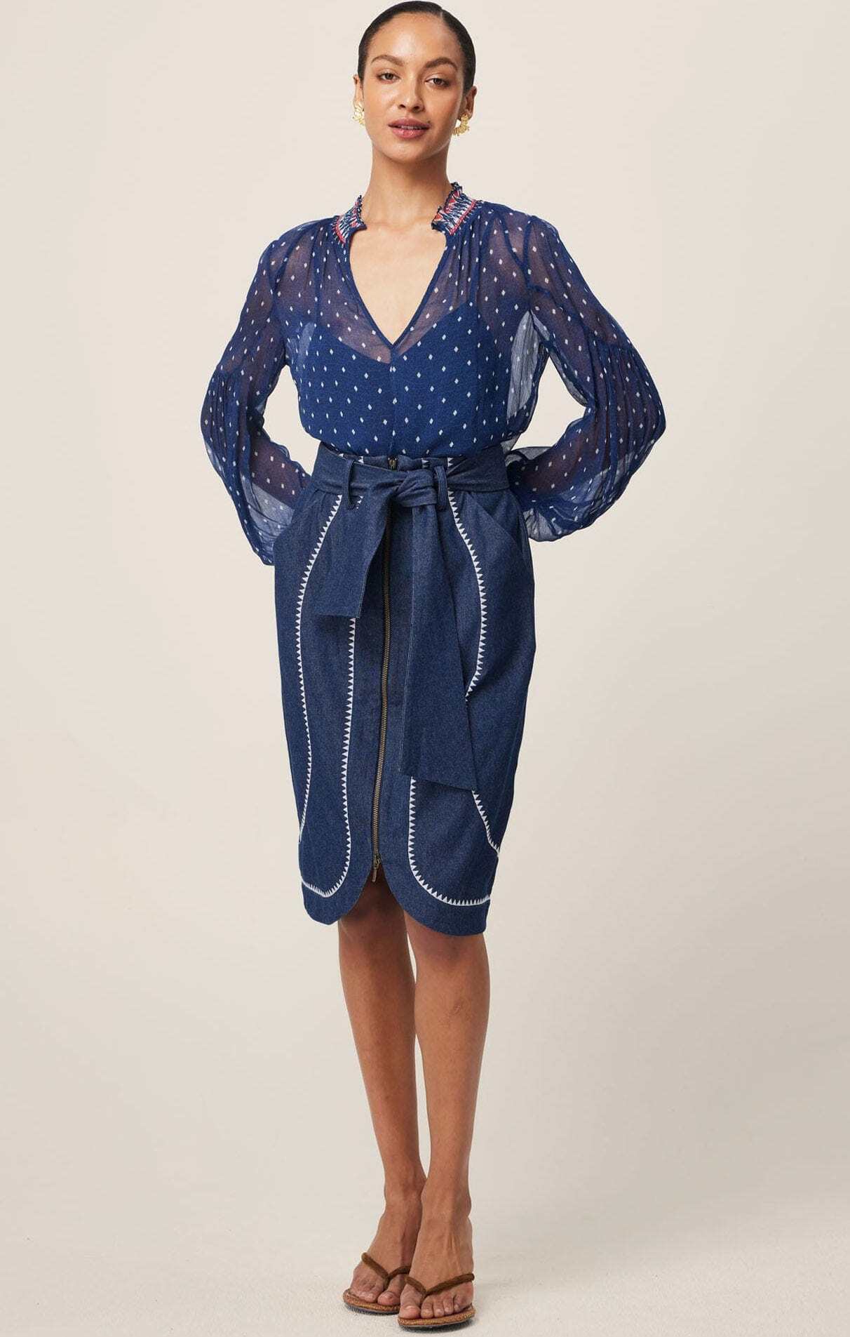 DELRAY EMBROIDERED SKIRT IN DARK DENIM
