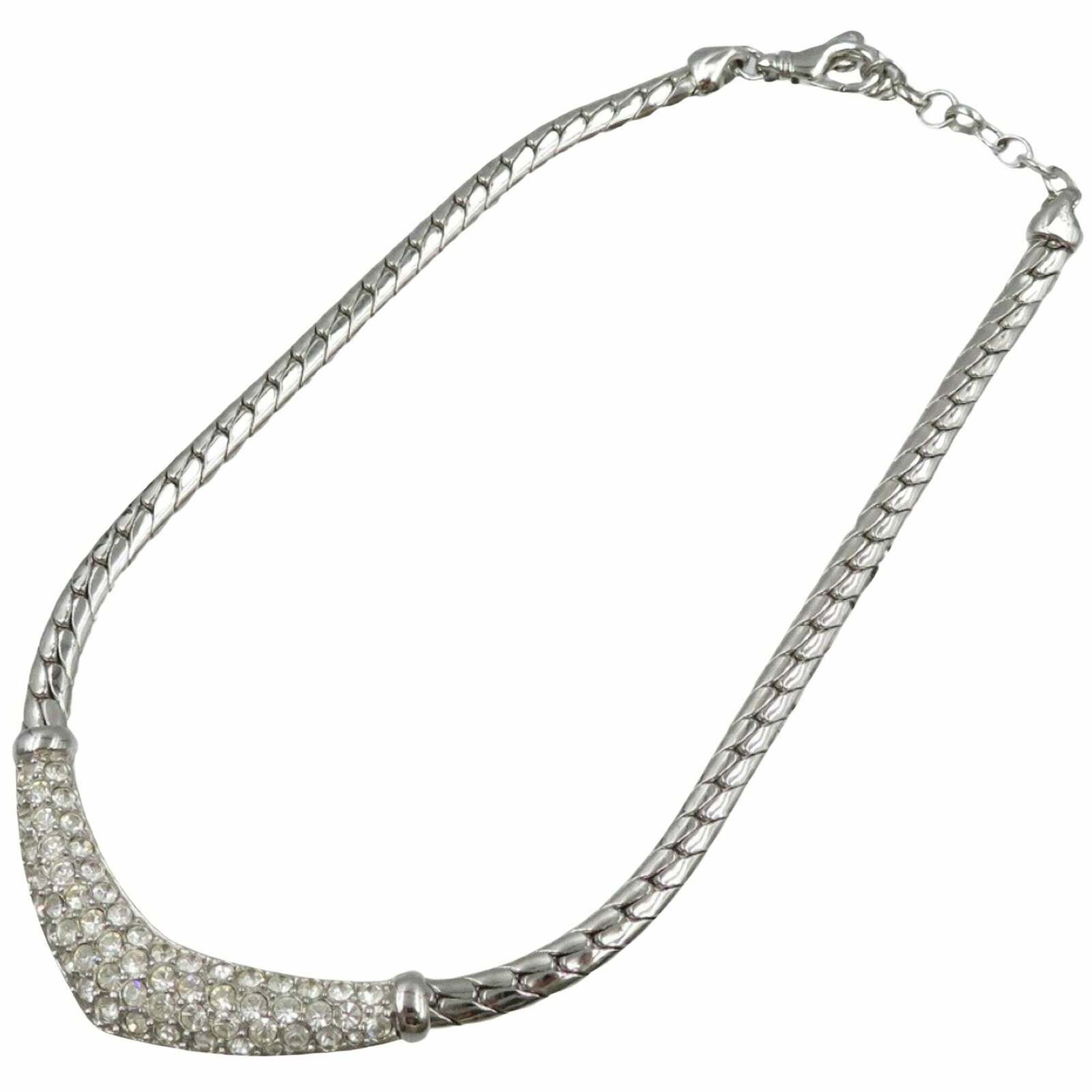 ilver Rhinetone VPendant Necklace - Silver / One Size