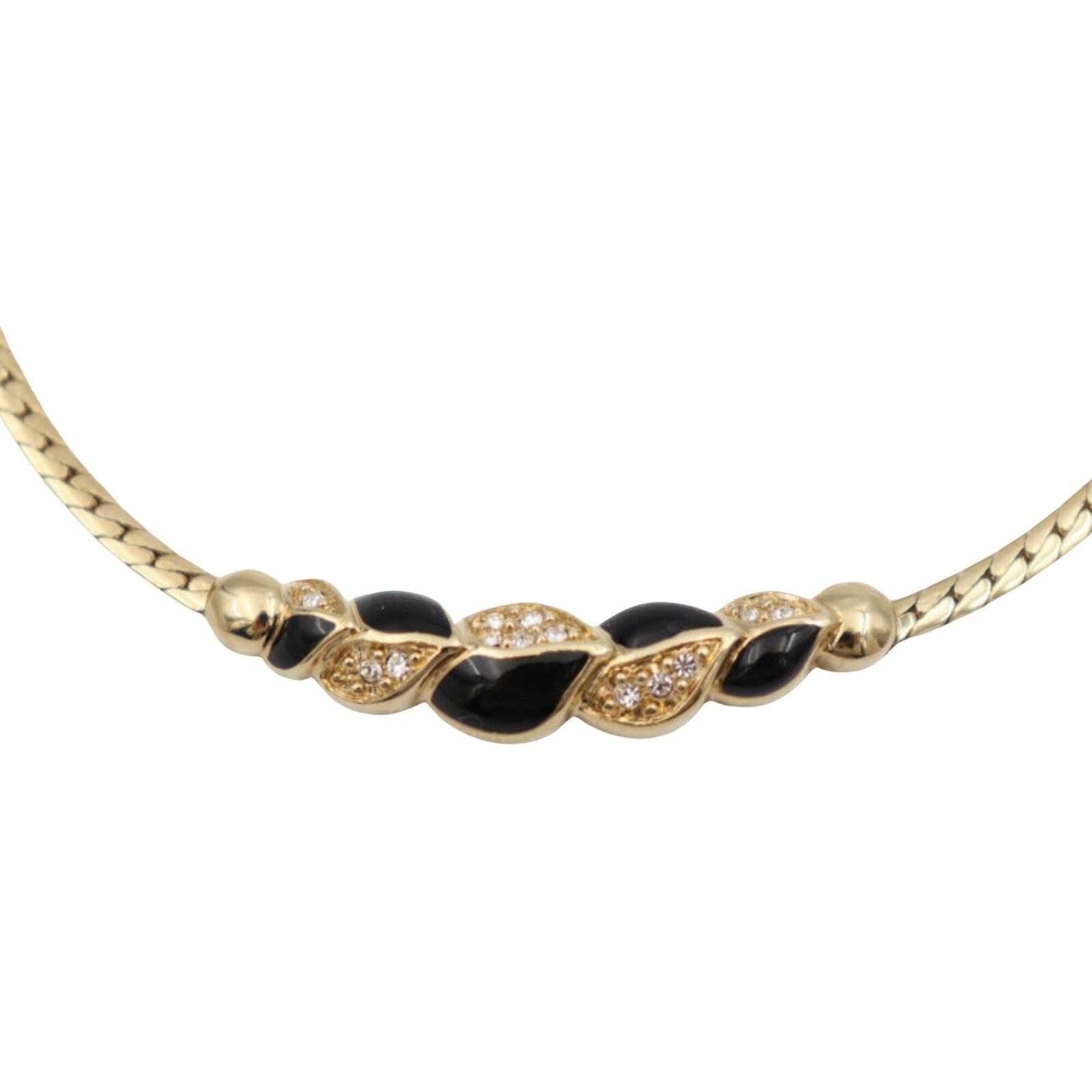 Vintage Black Enamel Diamond Necklace - Gold / One Size