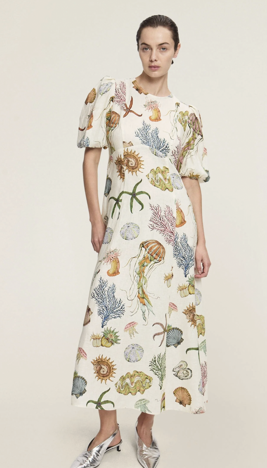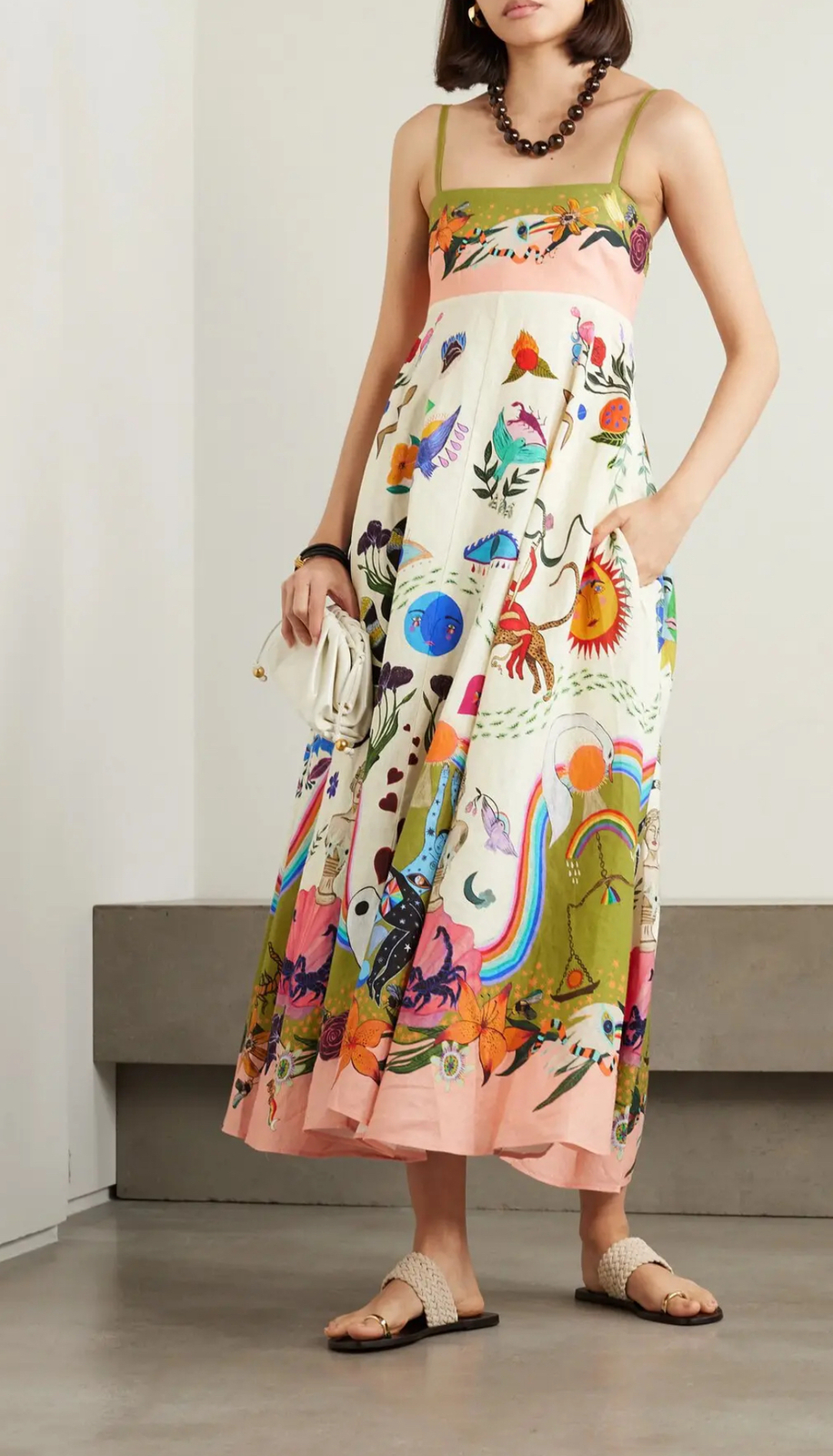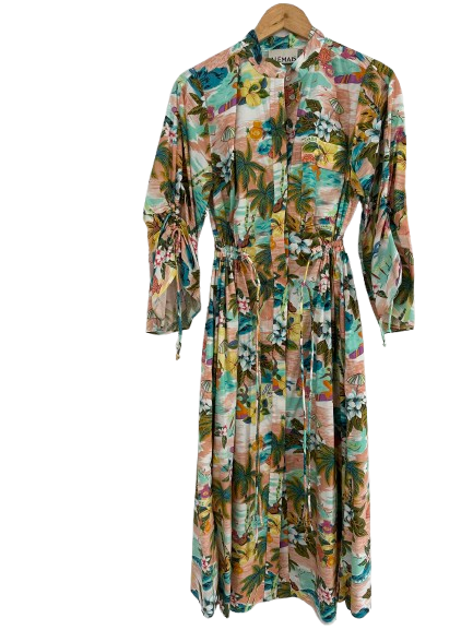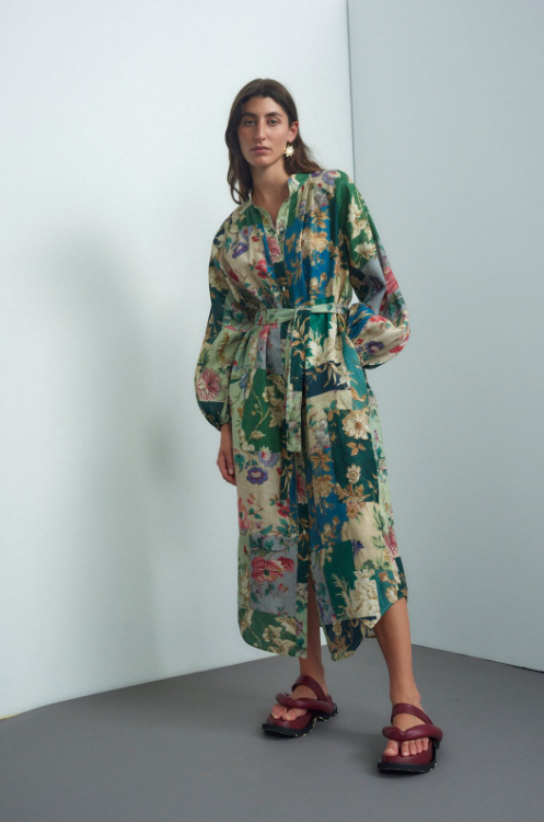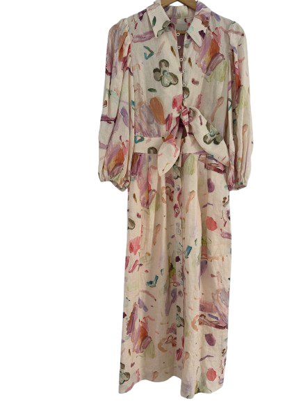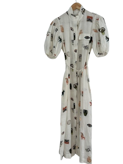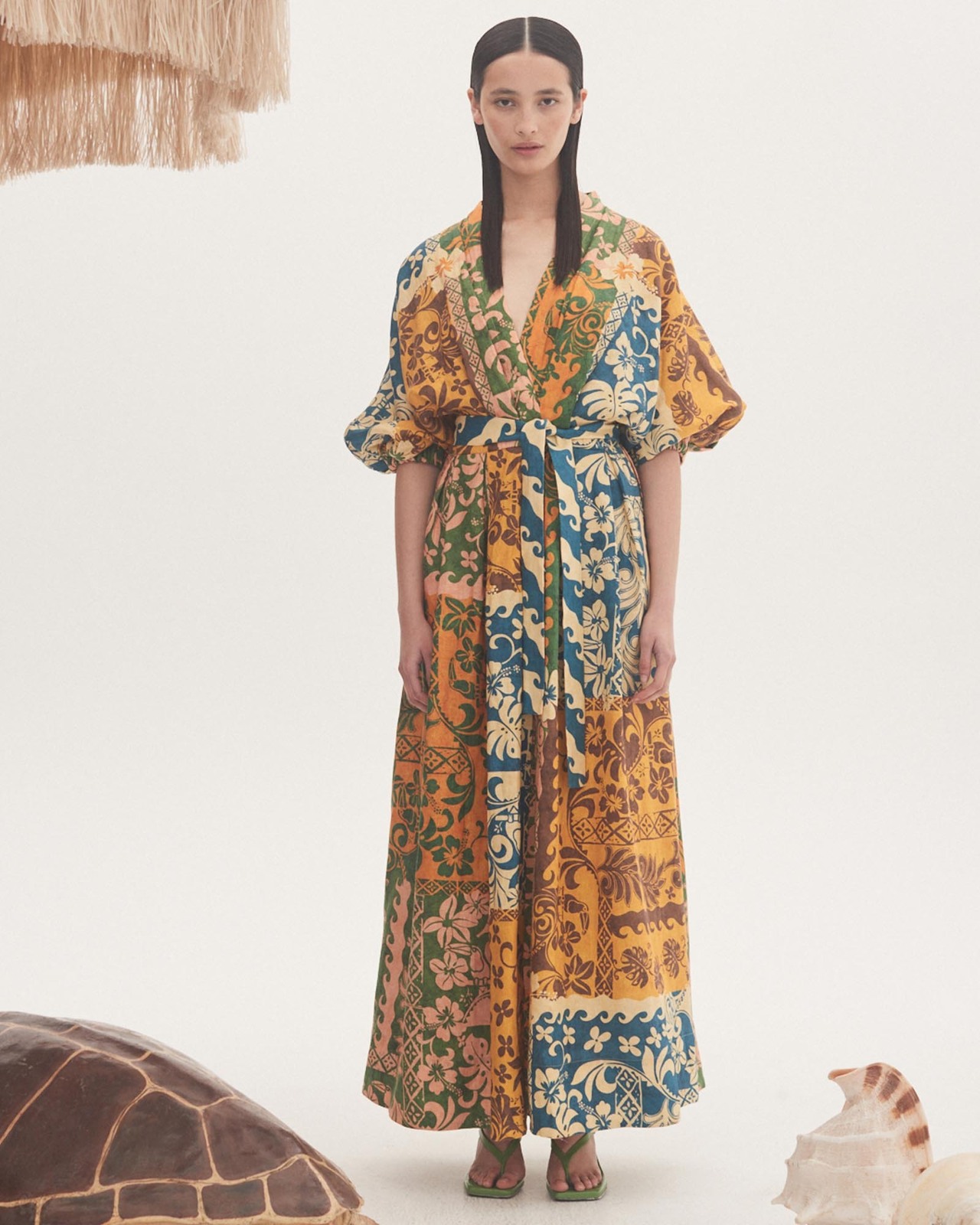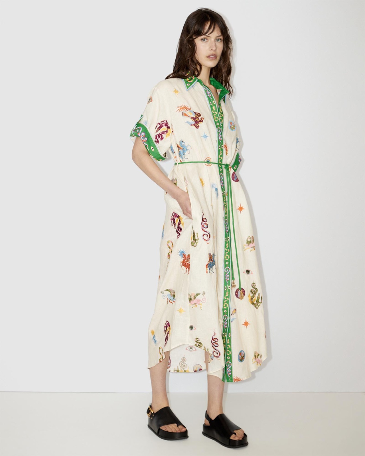 Meagan Cotton Poplin Kaftan Dress in Cream Multi