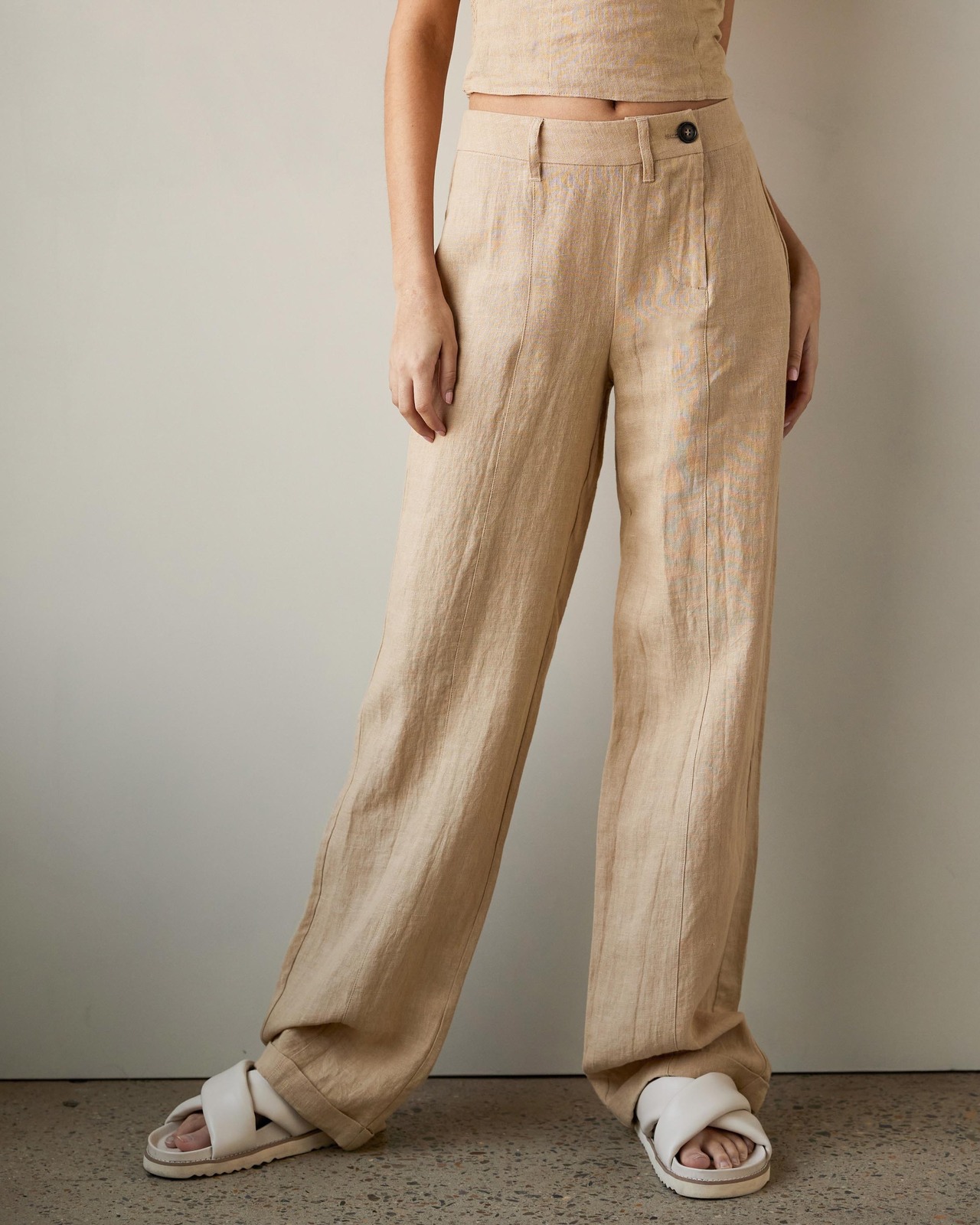 Linen Asymmetric Button Detail Pants