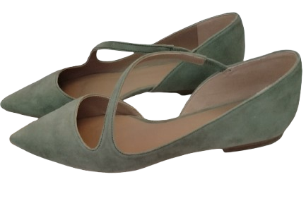 Flat Shoes in Green Suede
