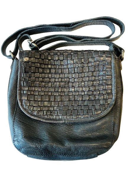 Leather Weave Crossbody Bag Black